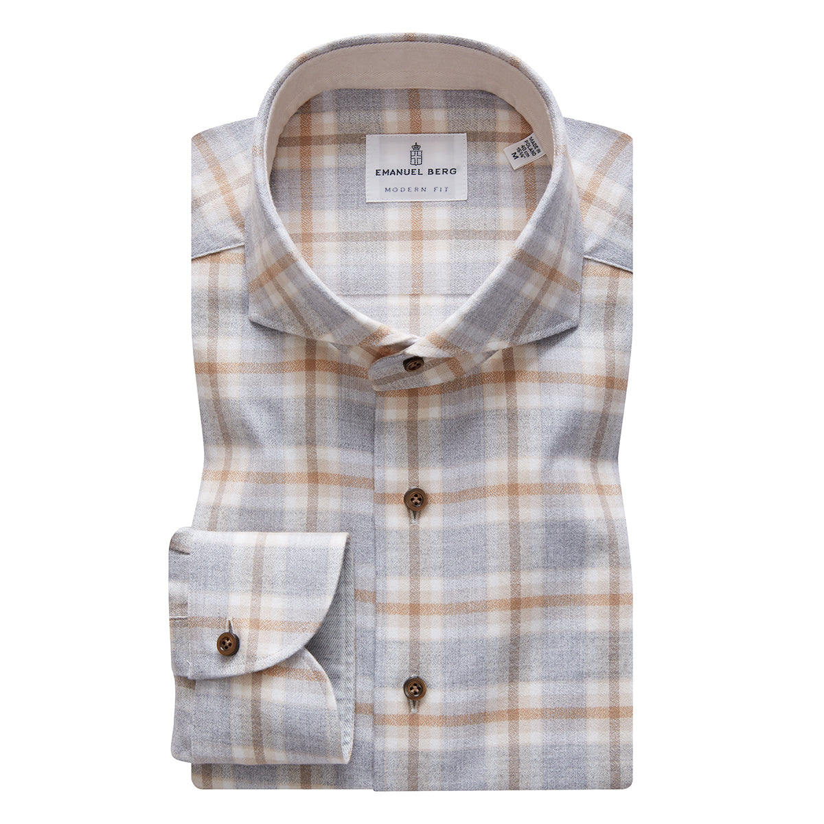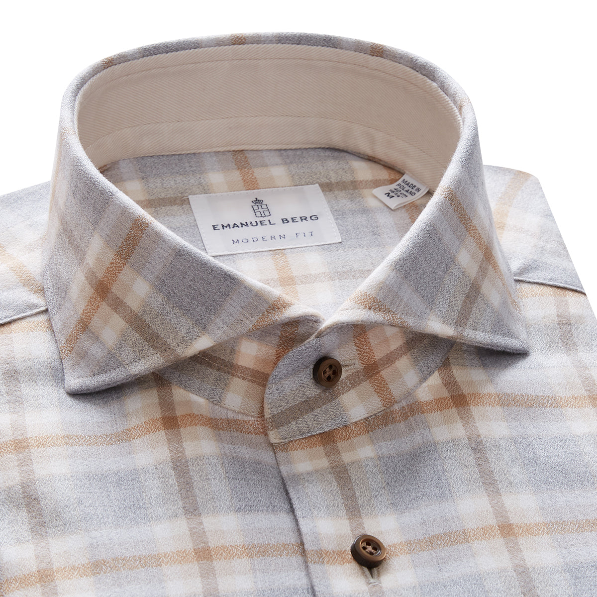 Brushed Cotton Shirt with Solid Contrast Inside Collar Stand