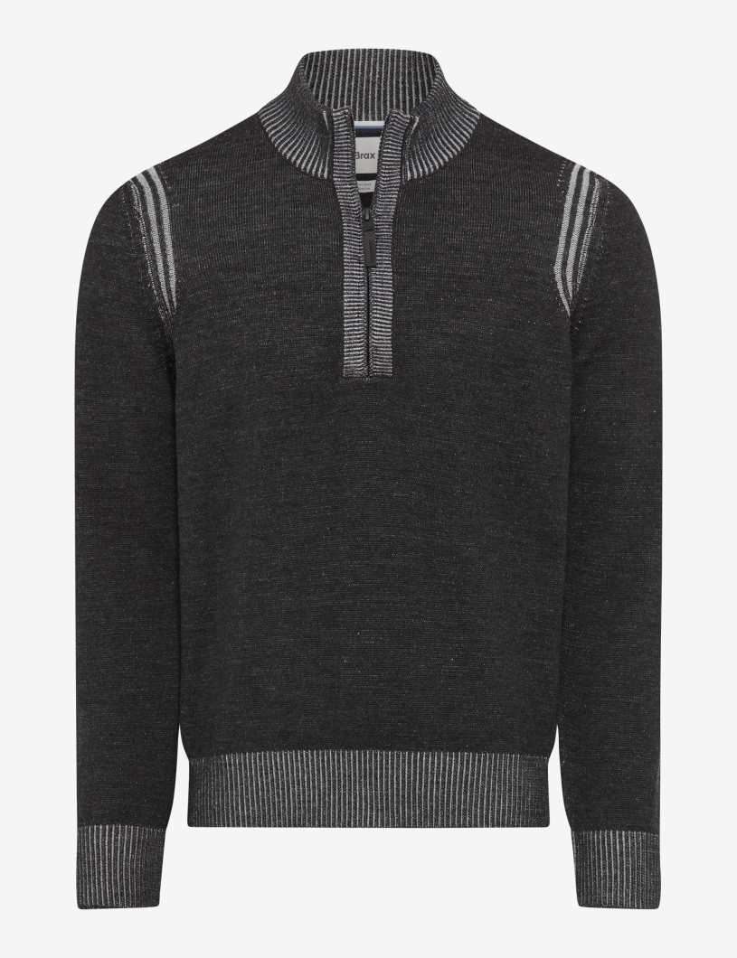 Elevate your wardrobe with the Brax Mens Steffen Quarter Zip Sweater. Expertly crafted for the modern man, this pullover perfectly blends sophisticated style with effortless comfort, making it an indispensable layering piece for any season.