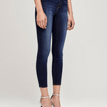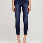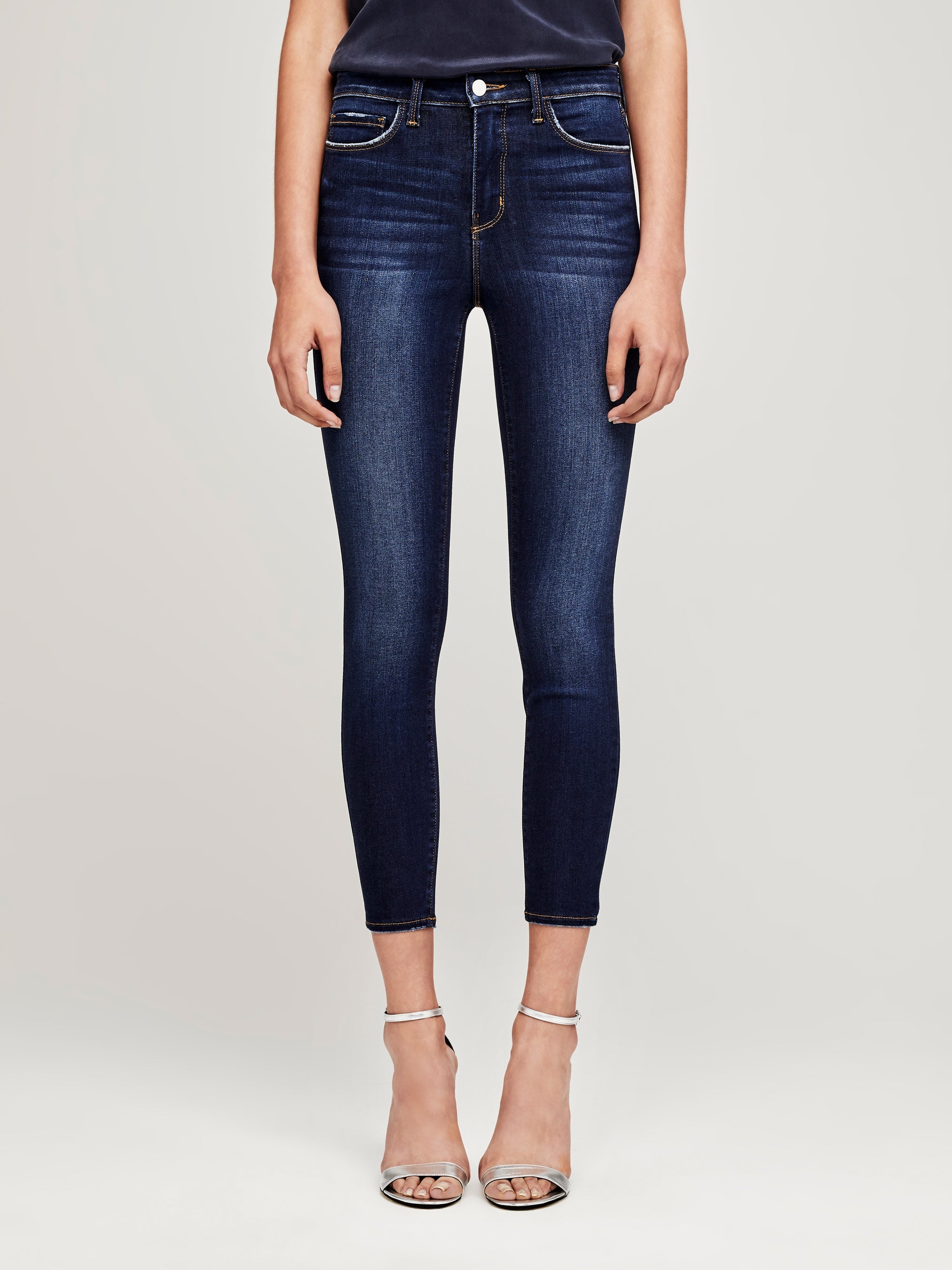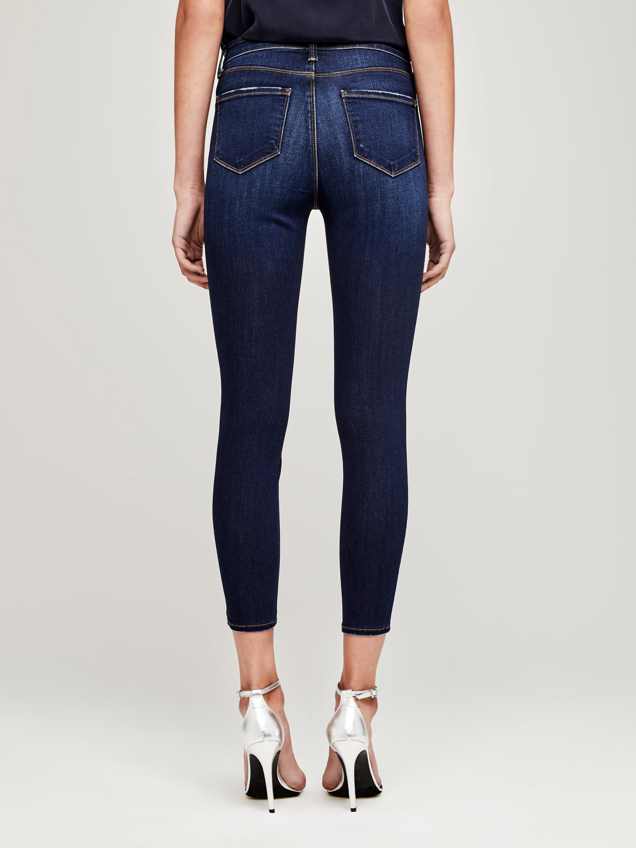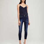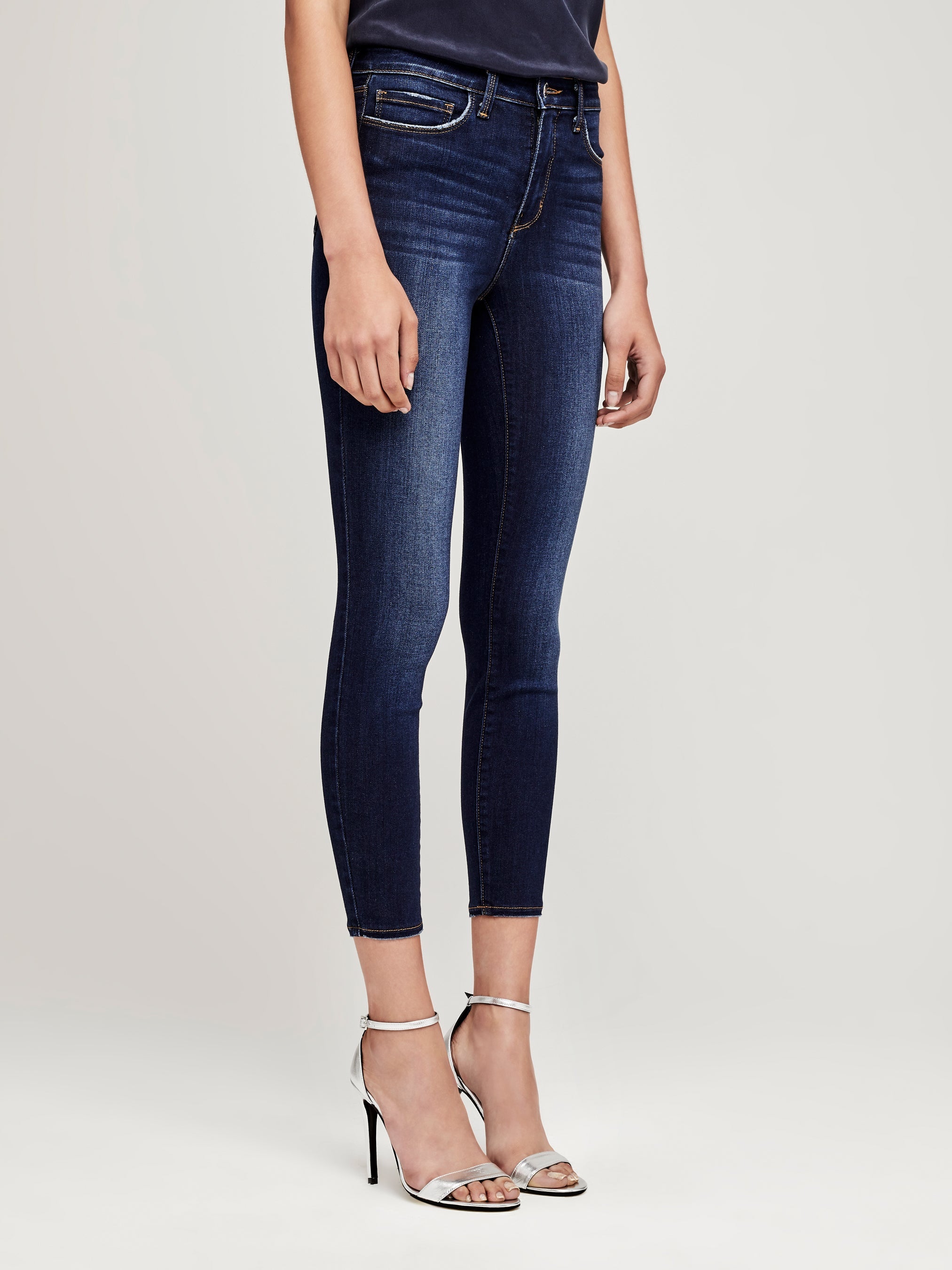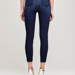 Our signature high-rise skinny jean crafted from premium, luxurious stretch denim in rich indigo. Tapered leg hugs from hip to ankle, while the contoured waistband defines and slims the natural waist. High-recovery fabric holds its shape, smoothing the silhouette without sacrificing comfort.