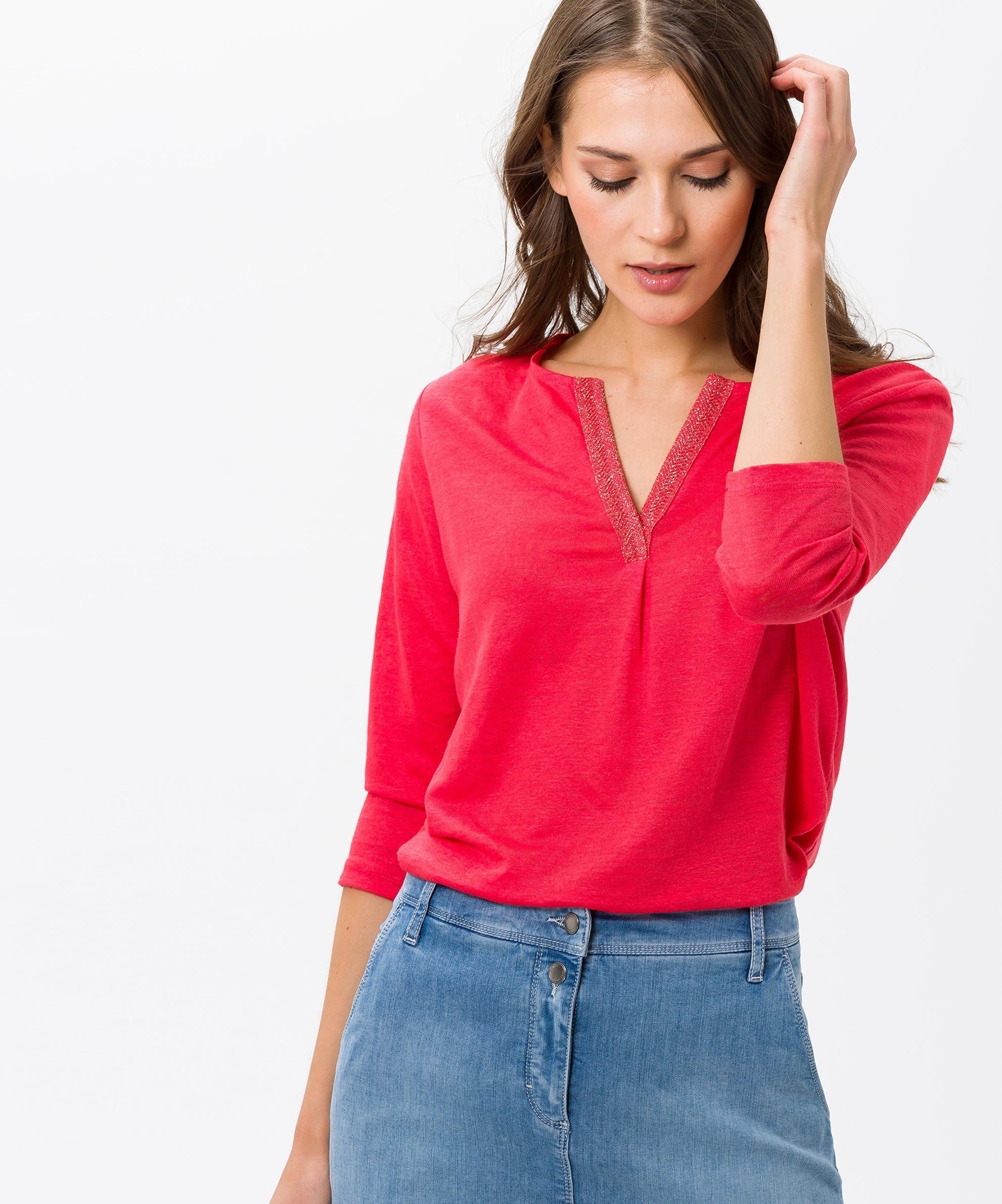 Embrace effortless style and comfort with the Brax Ladies' Carol Cooling 3/4 Sleeve Linen Shirt. Crafted from pure linen with thoughtful design details, this shirt is perfect for warm weather and offers a naturally elegant look.
