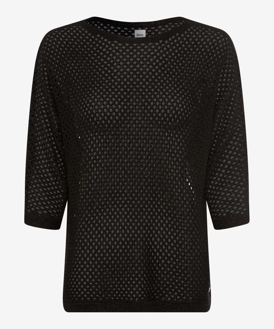 Embrace effortless elegance with the Brax Ladies Emma Lurex Ajour Top. This exquisite knit piece, featuring subtle metallic threads, adds a touch of sophistication to your wardrobe, perfect for both day and evening wear.