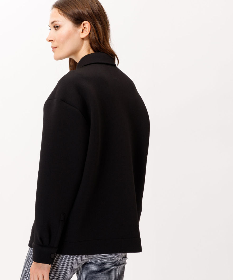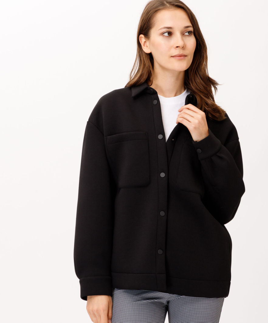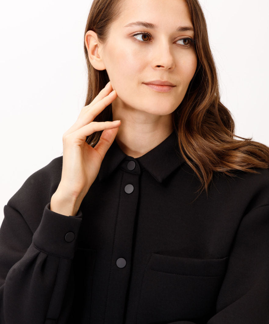 For women who value style and quality. The Francy style from the innovative BRAX LAB collection is a trendy overshirt. The high-quality scuba quality and the excellent workmanship of this casual women's blouse are absolutely convincing. The overshirt for women is smart and modern in a smooth viscose mix and in a casual silhouette with a typical shirt collar. The large breast pockets and the modern label complete the sporty style of this jacket. The clean cuffs on the hem and on the sleeves round off the look perfectly.