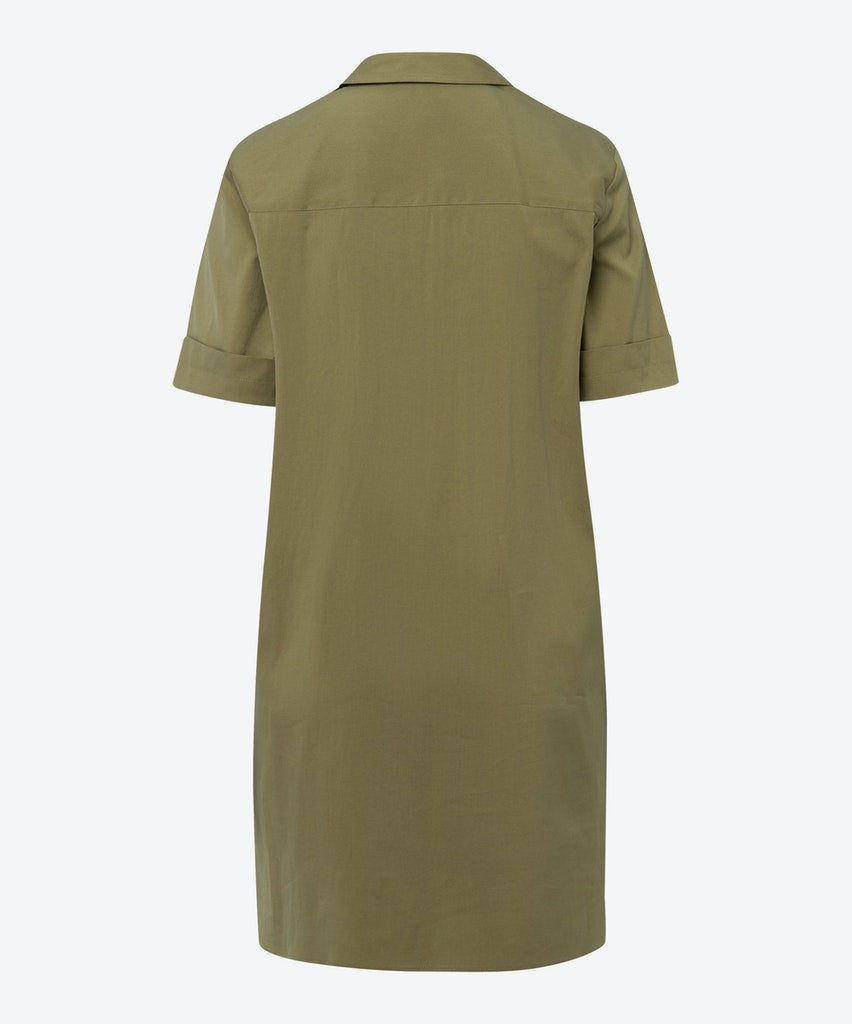 - Features a flattering straight, long silhouette with a classic shirt collar and casually cuffed short sleeves for a smart, contemporary look.