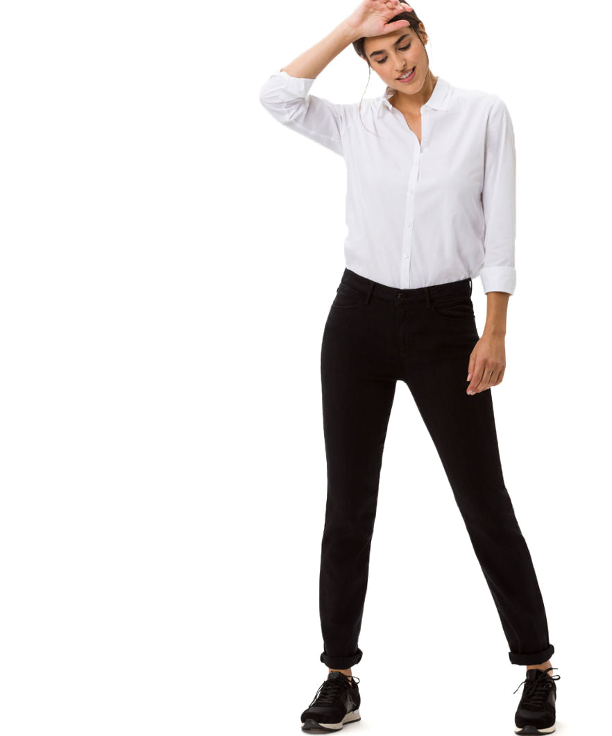 The SHAKIRA style is a trendy piece for women. Versatile in styling, these five-pocket jeans showcase your look in a fashion-conscious way. The skinny fit women's pants accentuate feminine curves with a slim cut and regular waist. The pants have a sporty look, particularly due to the intricate pocket design. In addition, they feature decorative dividing seams. The extremely elastic Free to Move quality guarantees you unrestricted freedom of movement with an optimal stretch and recovery ratio. The sustainable, flowing, and smooth Lyocell blend also provides excellent comfort with this skinny jeans.