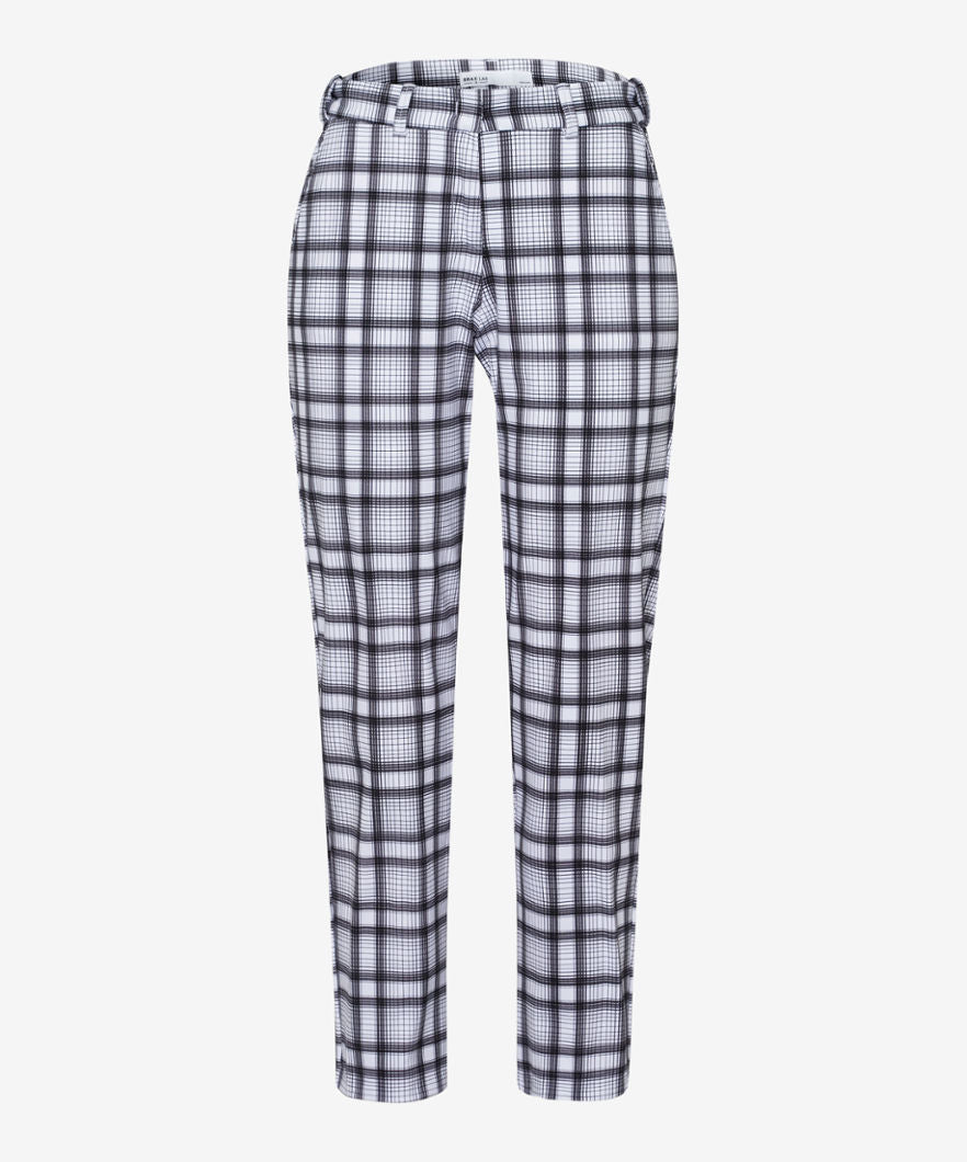 These modern women's trousers in the Celina style impress with their trendy style and innovative techno stretch quality. The innovative polyamide-elastane mix ensures a pleasant feel, high breathability and a quick-drying and cooling effect. In addition to these climate-active properties, the techno stretch fabric enriches these smart pants with high elasticity and thus the best freedom of movement. The chinos for women with a casual, sporty checked pattern are appealing.