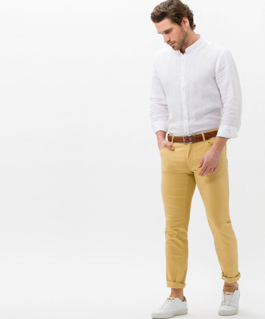 The Style CHUCK is a must have for men. Create your fashion-conscious appearance with these five-pocket jeans in combination with with summery sweatshirts and sneakers. The modern fit men's pants are fashionable and versatile with a straight fit and a regular rise. The proven look of these pants is particularly due to the elaborate pocket design. In addition, they are made with cool used effects. Movement without limits: The extremely elastic Hi-Flex fibers guarantee unrestricted freedom of movement due to High Stretch - exclusive to BRAX. Unique and authentic, the denim also stands for high durability. The characteristic finish is simple yet effective. The sustainable, easy-care and skin-friendly cotton mix also offers a perfect feel with these five-pocket jeans.