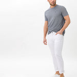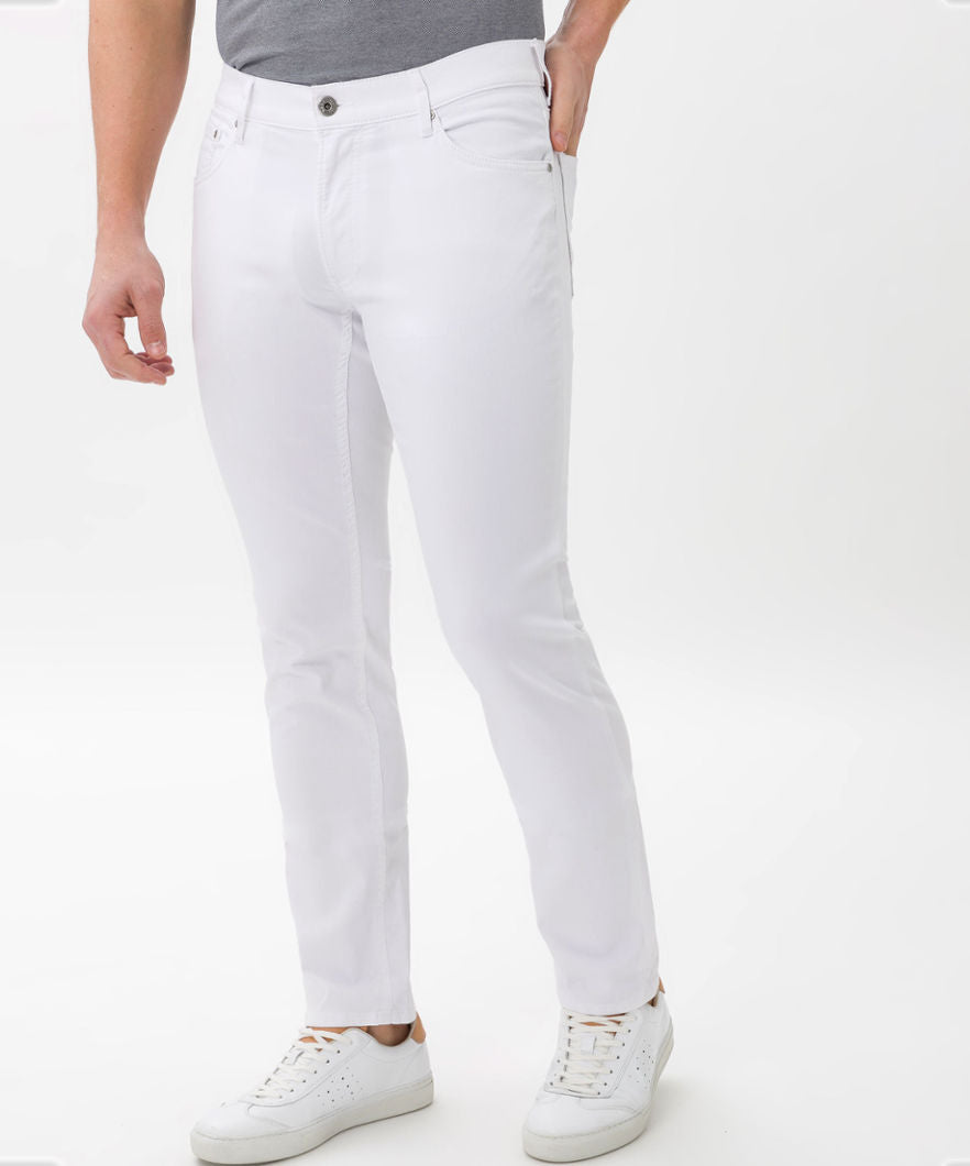 The Style CHUCK is a must have for men. Create your fashion-conscious appearance with these five-pocket jeans in combination with with summery sweatshirts and sneakers. The modern fit men's pants are fashionable and versatile with a straight fit and a regular rise. The proven look of these pants is particularly due to the elaborate pocket design. In addition, they are made with cool used effects. Movement without limits: The extremely elastic Hi-Flex fibers guarantee unrestricted freedom of movement due to High Stretch - exclusive to BRAX. Unique and authentic, the denim also stands for high durability. The characteristic finish is simple yet effective. The sustainable, easy-care and skin-friendly cotton mix also offers a perfect feel with these five-pocket jeans.