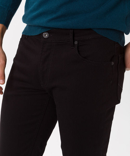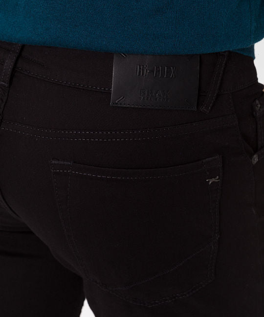 These modern five-pocket jeans combine the outstanding properties of super-elastic Hi-FLEX and exclusive Perma equipment with their special denim quality. The Hi-FLEX jeans are characterized on the one hand by authentic ring yarns with a modern look and by the highest form stability with perfect stretching and recovery behavior. This super comfortable wearing feeling is achieved through a special Elastech technology. In addition, these clean men's jeans guarantee high color fastness. A specially developed washing process reduces the discoloration of the denim. The result of this innovative equipment is an extremely hard-wearing, masculine and super-elastic five-pocket jeans in a highly fashionable slim-fit silhouette.