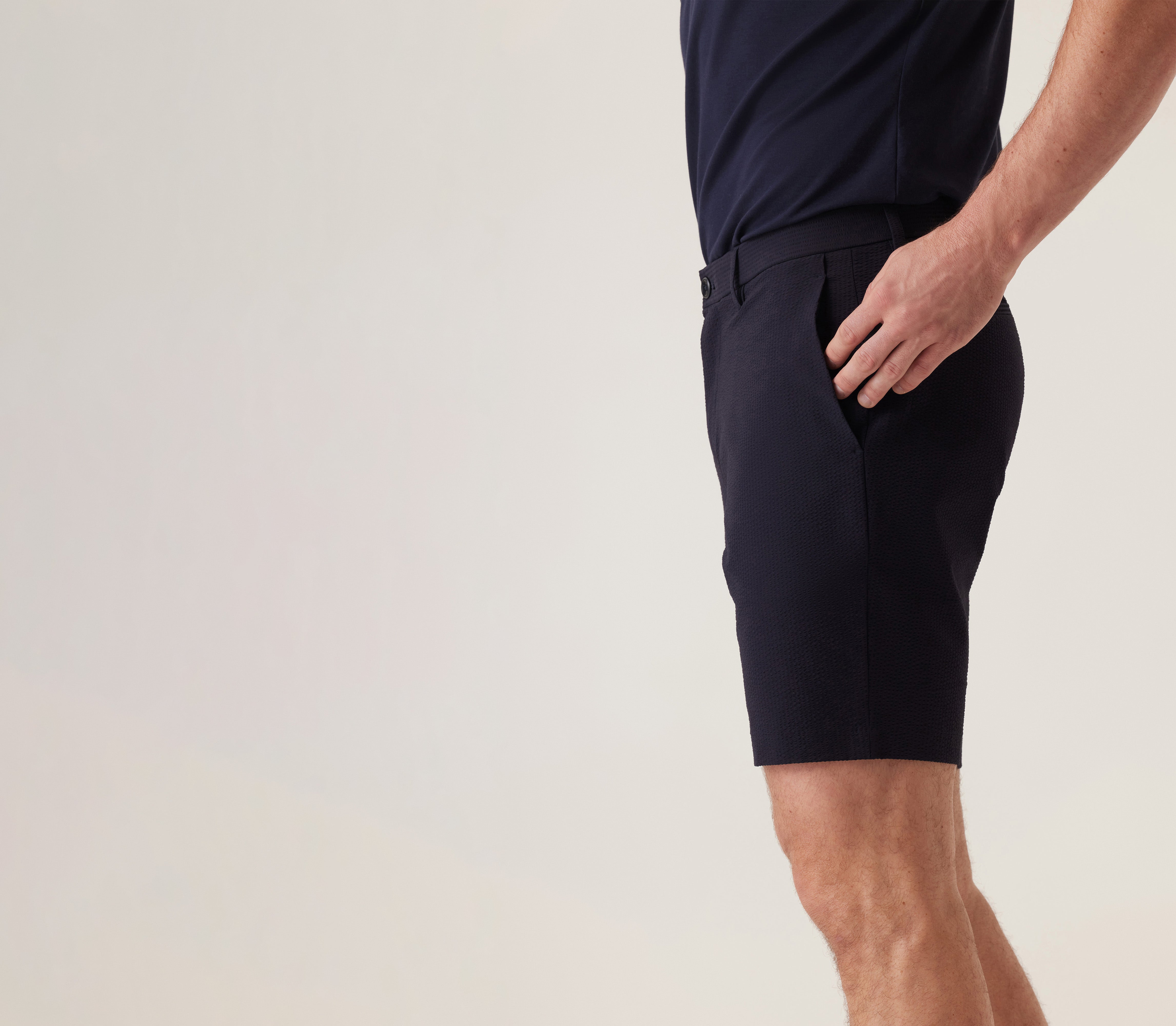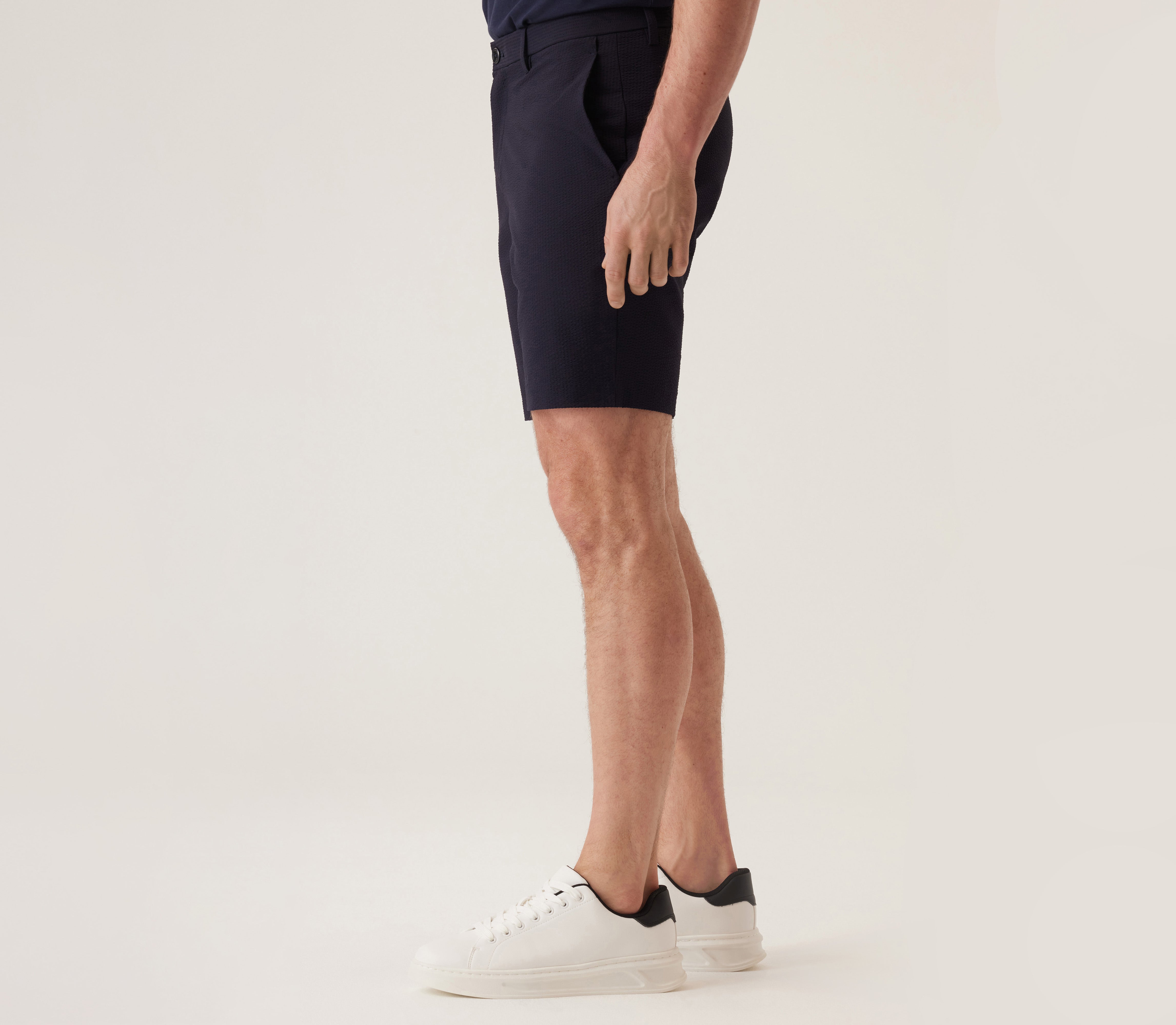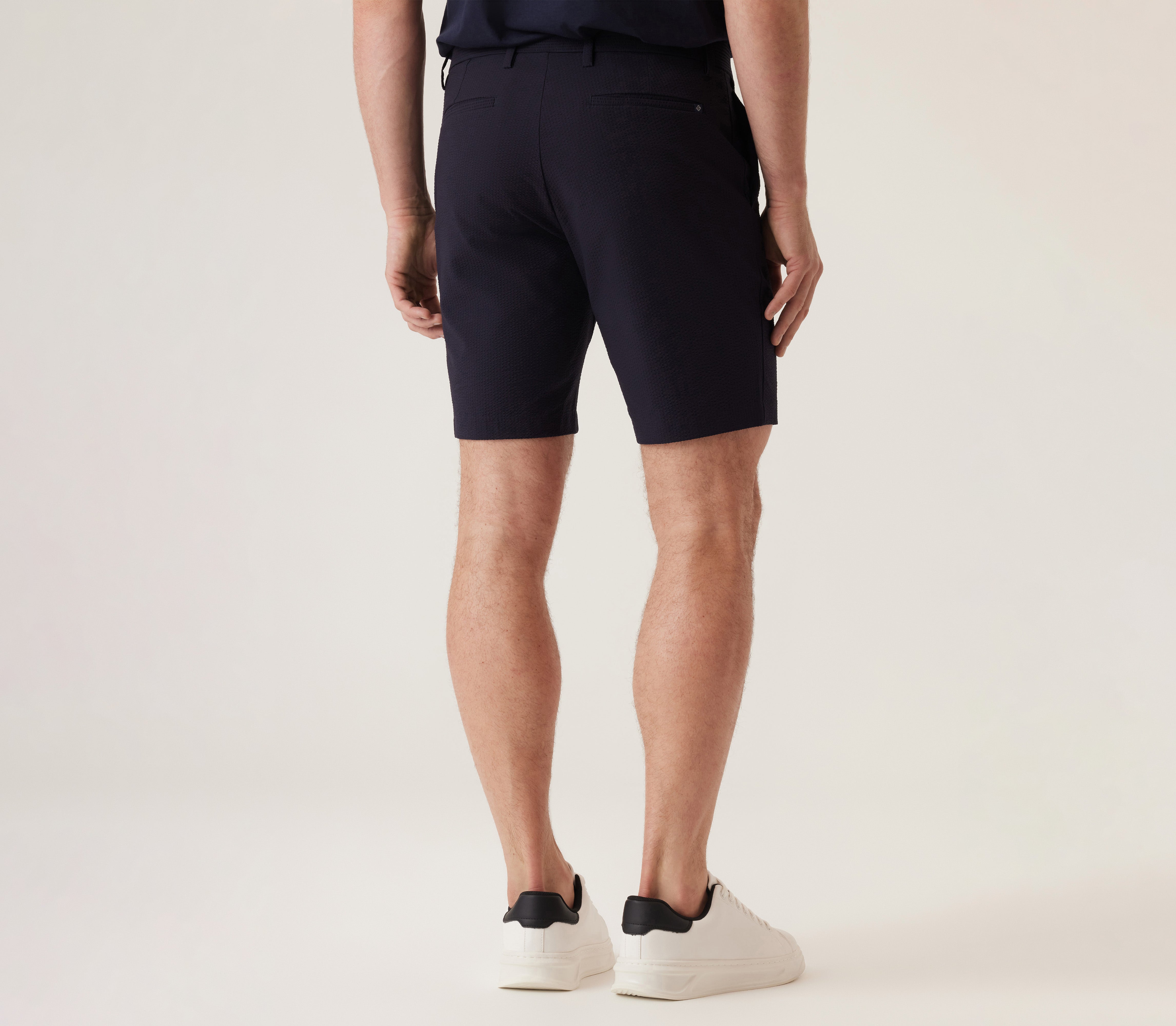 Experience elevated summer style with the Oasis Bermuda, designed in our innovative Satellite EME Seersucker fabric. This lightweight, textured fabric combines breathable comfort with a touch of stretch, ensuring effortless movement and all-day ease. The tailored silhouette and refined finish make it ideal for both relaxed afternoons and polished occasions. Whether you’re exploring sunlit streets or enjoying a sunset dinner, the Oasis Bermuda in Satellite EME Seersucker brings sophistication to every moment.