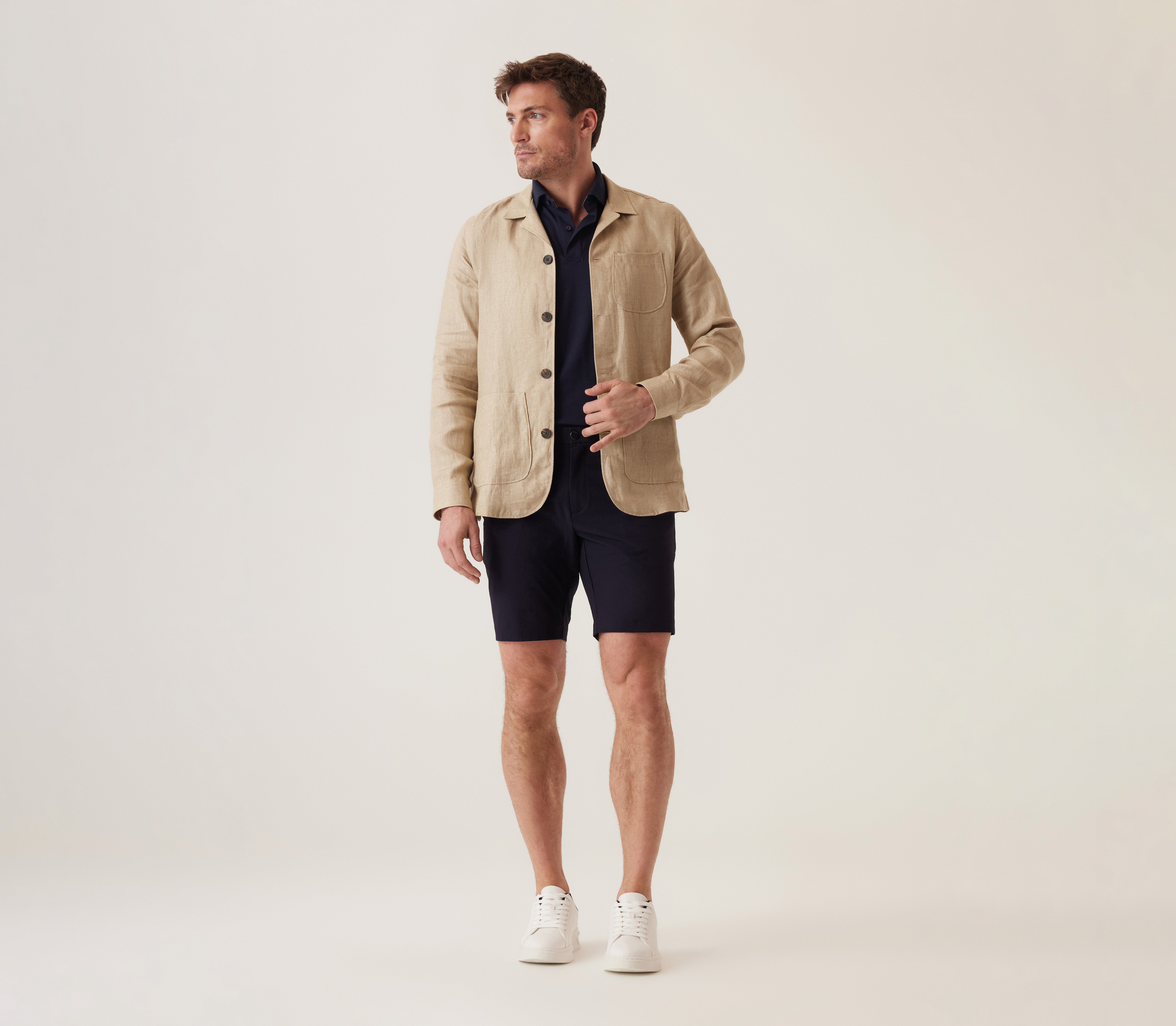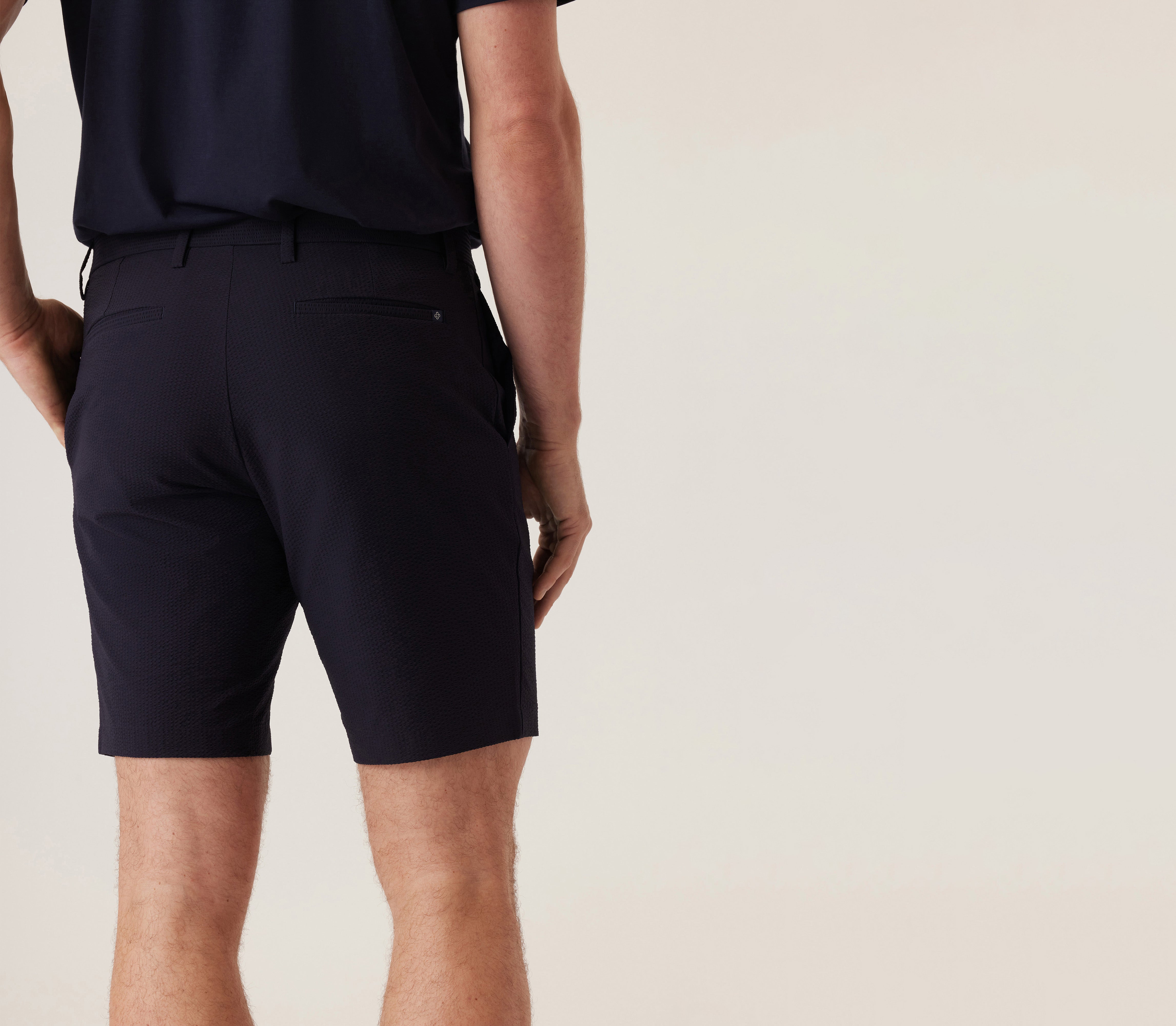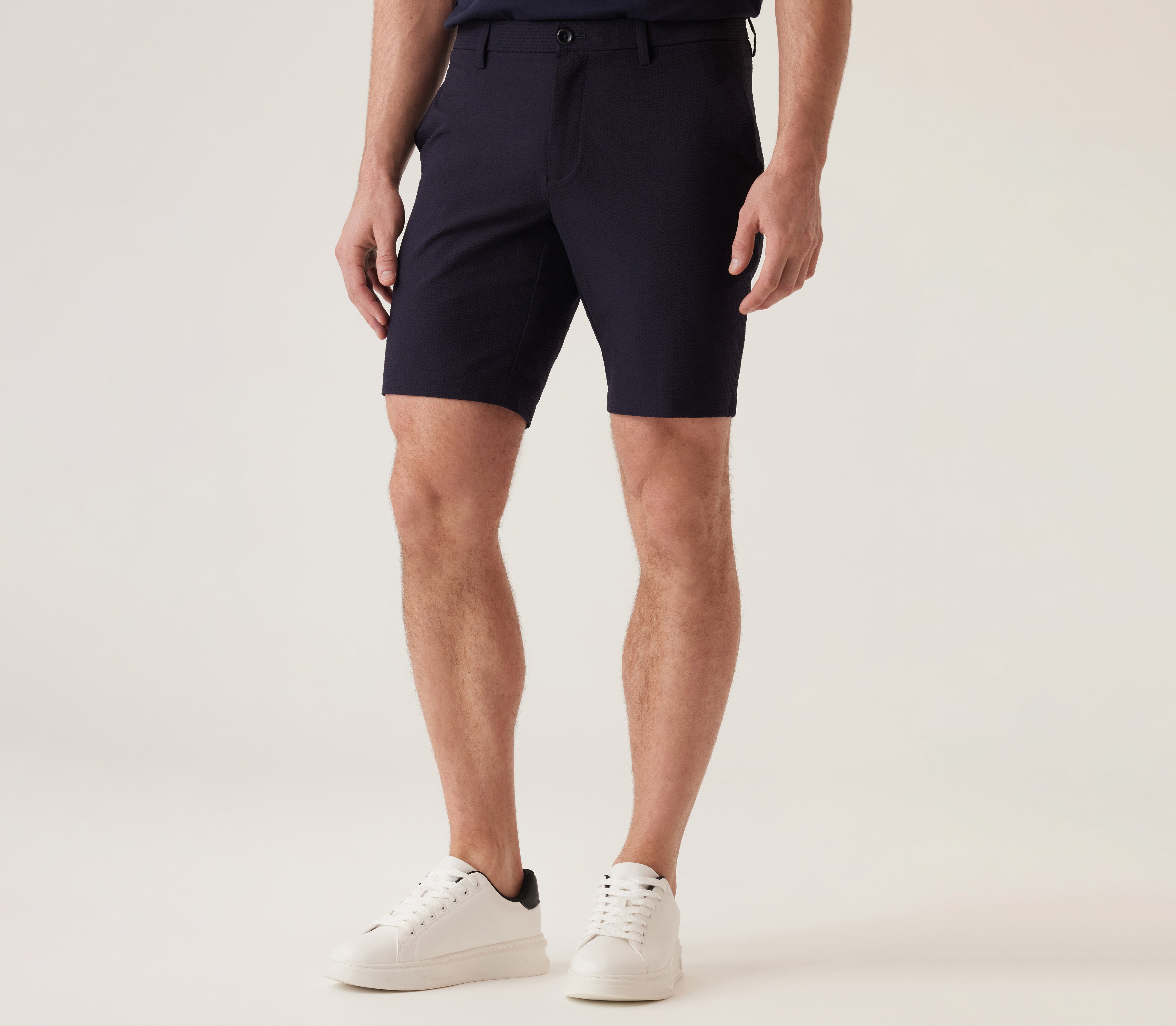 Experience elevated summer style with the Oasis Bermuda, designed in our innovative Satellite EME Seersucker fabric. This lightweight, textured fabric combines breathable comfort with a touch of stretch, ensuring effortless movement and all-day ease. The tailored silhouette and refined finish make it ideal for both relaxed afternoons and polished occasions. Whether you’re exploring sunlit streets or enjoying a sunset dinner, the Oasis Bermuda in Satellite EME Seersucker brings sophistication to every moment.