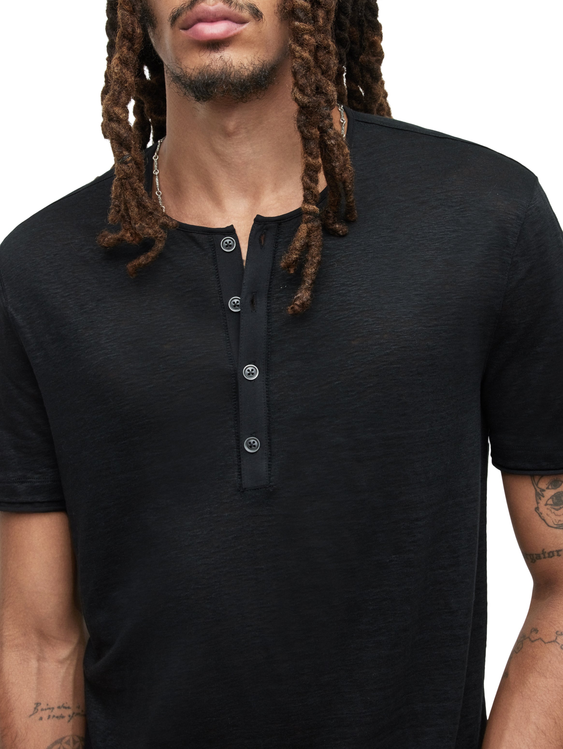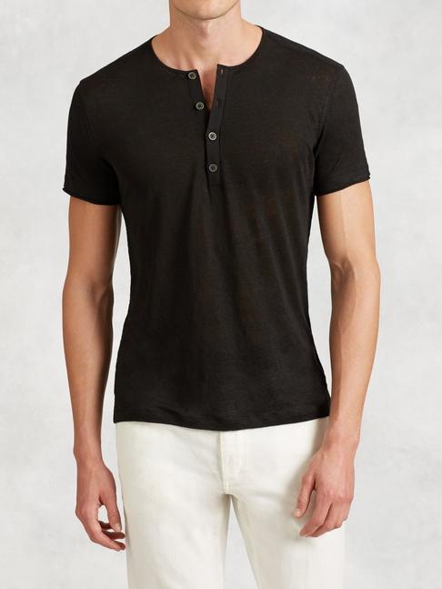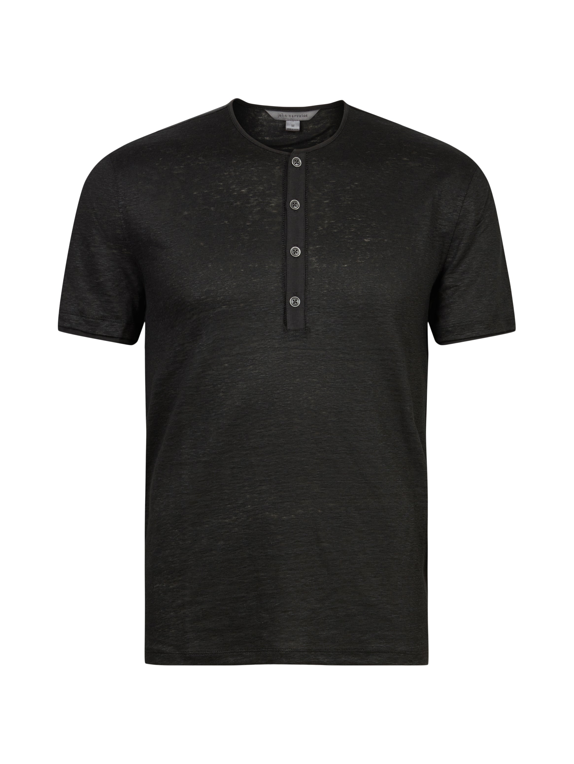 Bolster your basics rotation with this versatile new-season Henley. It's crafted in premium, ultra-soft linen and features cotton jersey trim details and a classic Henley neckline. Wear it solo or layered under jackets.