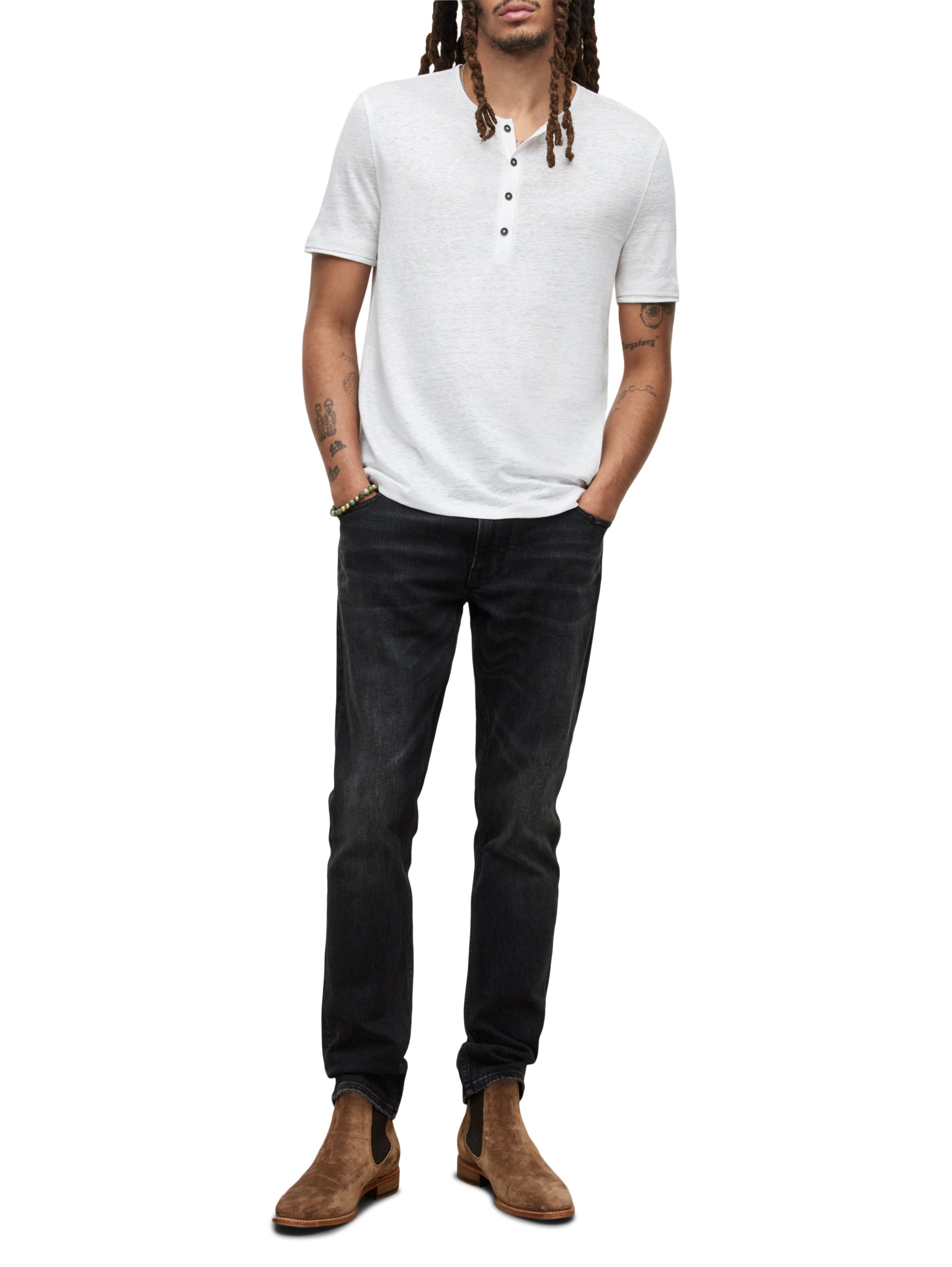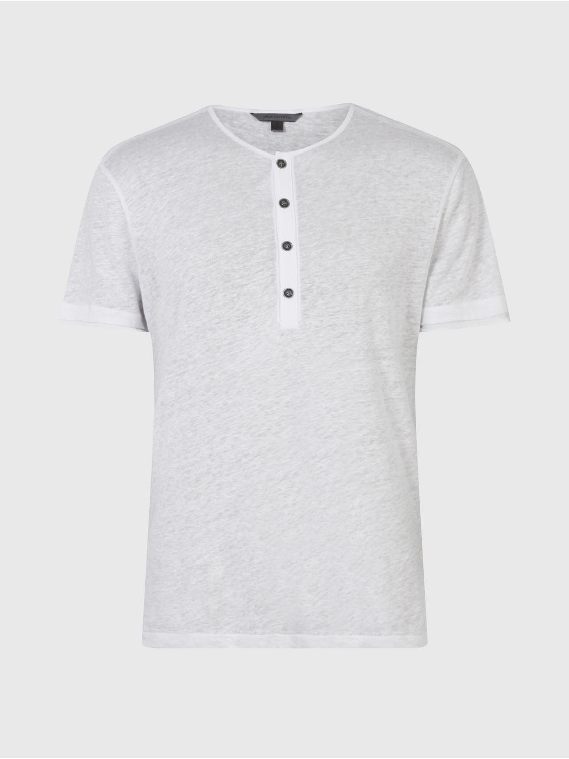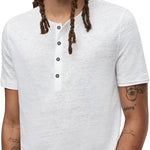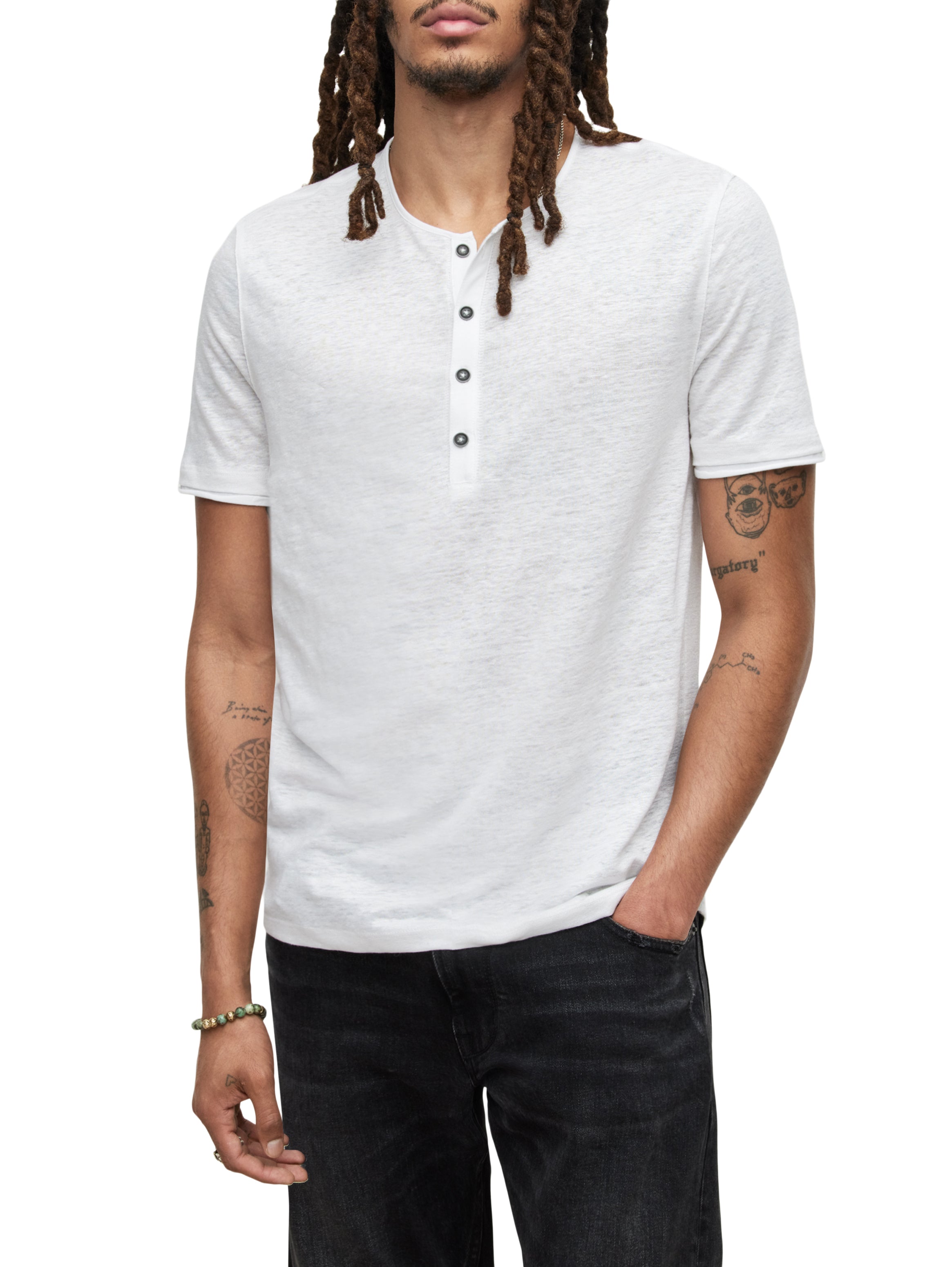 Bolster your basics rotation with this versatile new-season Henley. It's crafted in premium, ultra-soft linen and features cotton jersey trim details and a classic Henley neckline. Wear it solo or layered under jackets.