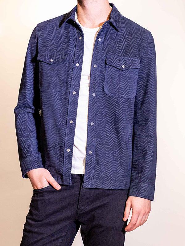 JONAH PRINTED HERRINGBONE LEATHER SHIRT JACKET WIT