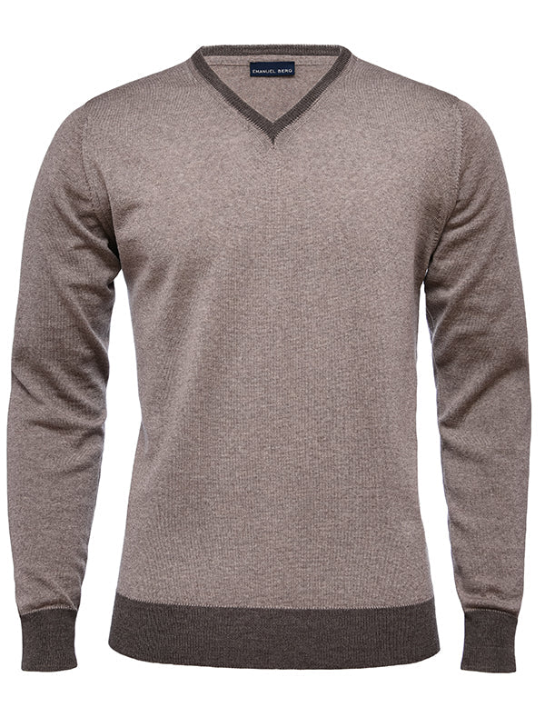 Light Gauge Beige V-Neck Sweater
