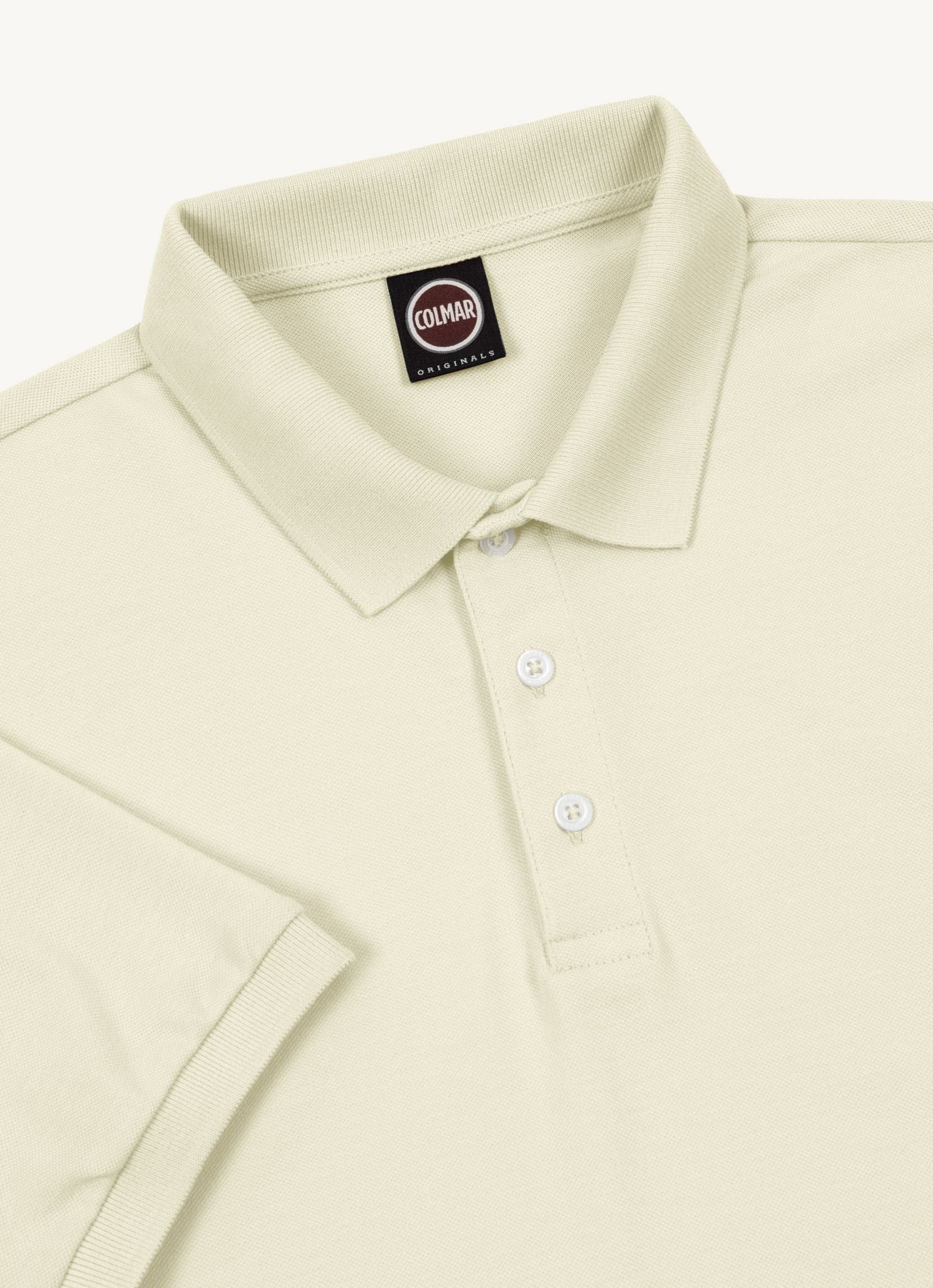 Polo shirt in soft stretch cotton piqué with tone-on-tone ribbed knit collar and armholes. Comfortable, thanks to the side slits, it’s enriched by the Colmar Originals patch, appliqué on the left sleeve. Informal and sporty at the same time.