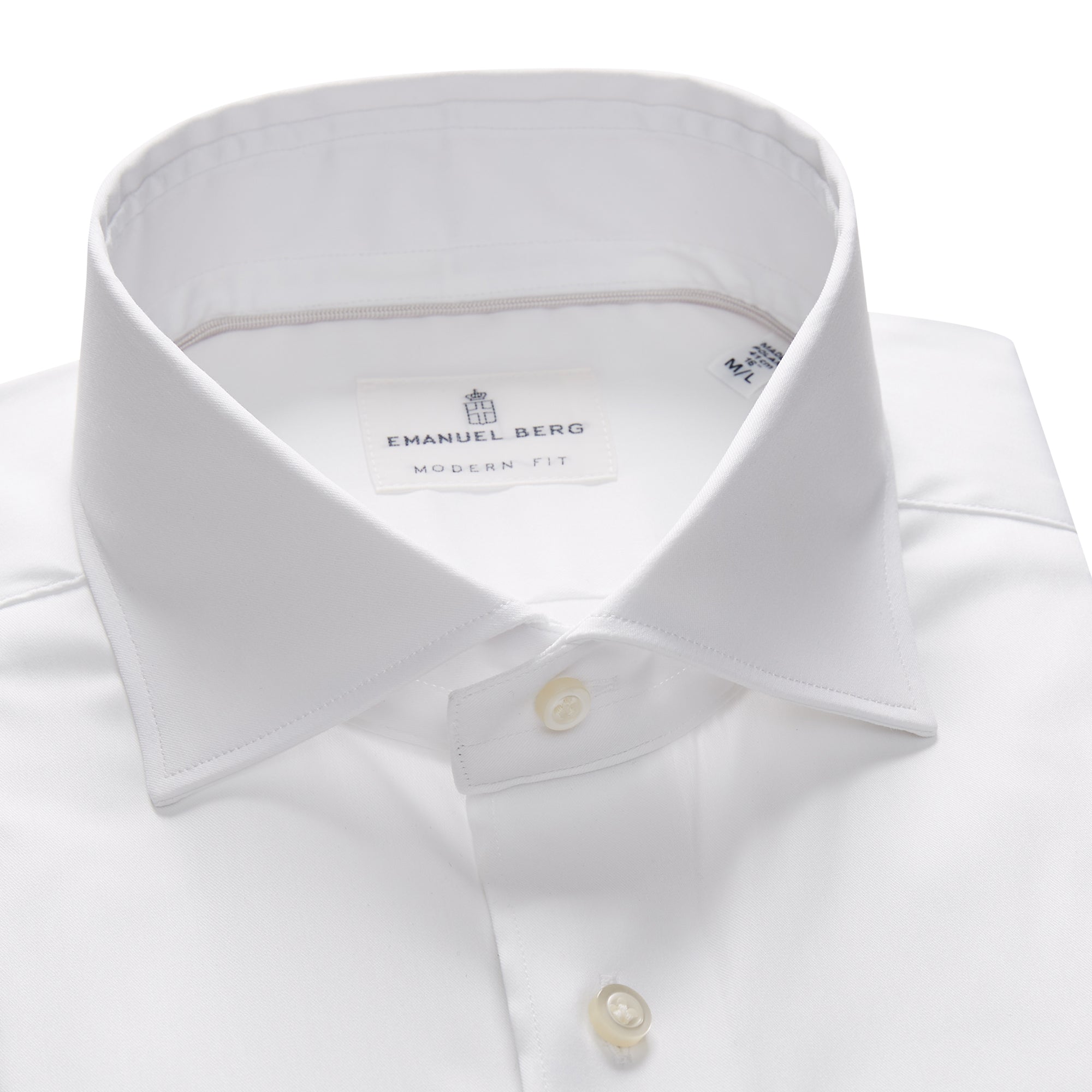 This white Modern Performance comfort twill dress shirt, comes with our Byron collar and white buttons.