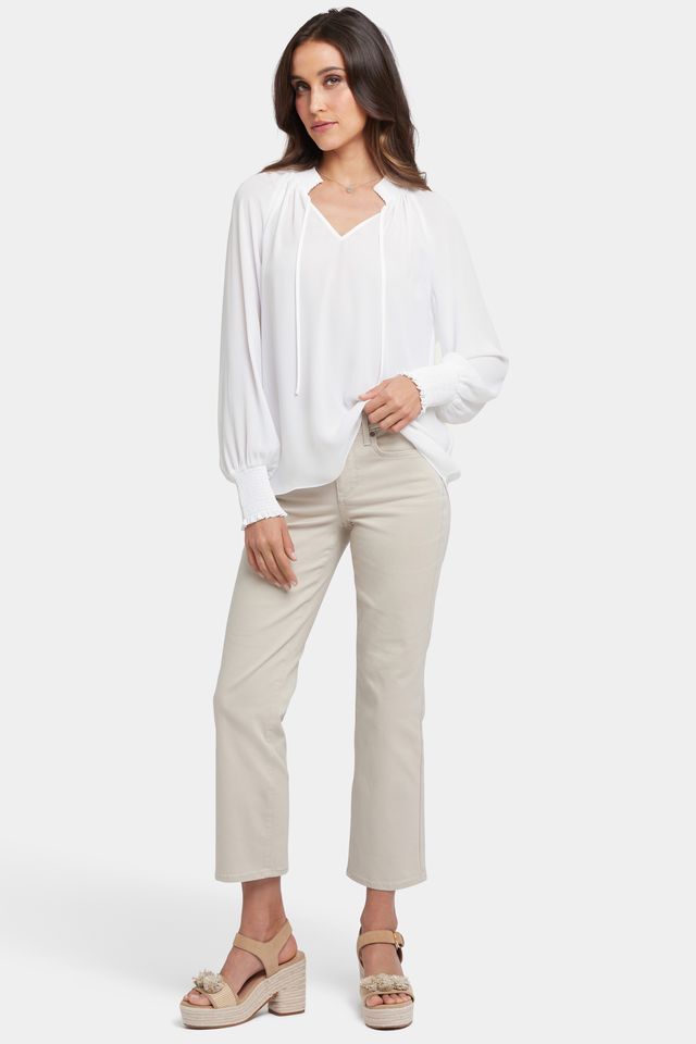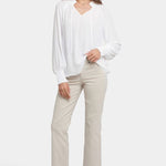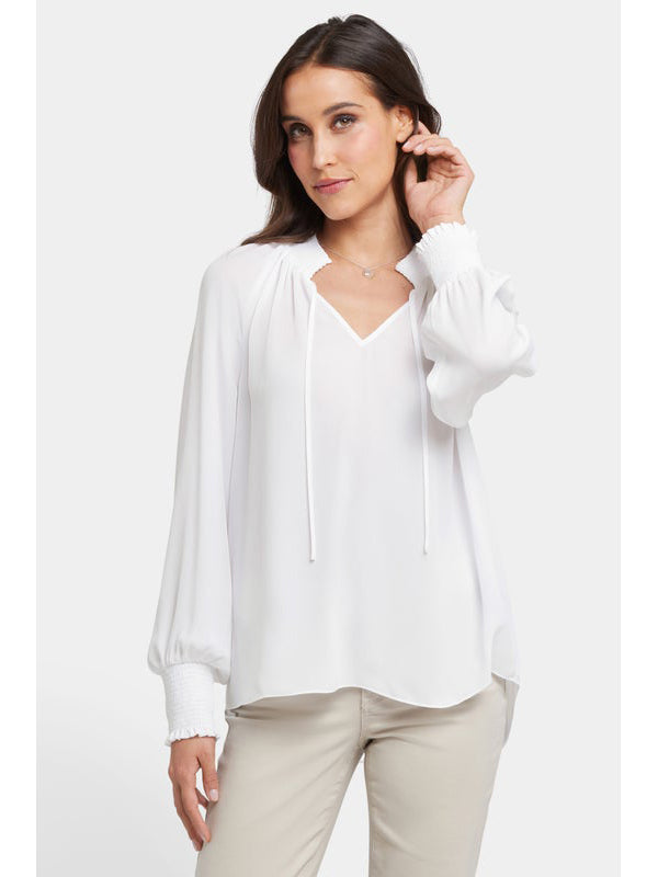 Embrace effortless elegance with the NYDJ Gemma Shirred Blouse, a versatile piece designed for both comfort and impeccable style. This sophisticated blouse embodies a relaxed yet refined aesthetic, making it a perfect addition to your curated wardrobe.