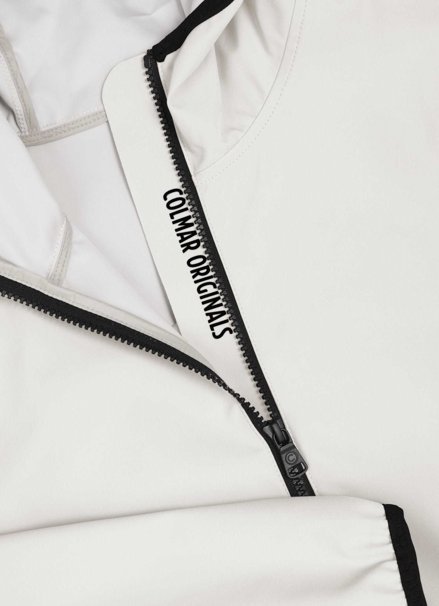 Men’s jacket with hood made of waterproof (5000mm/H2O) and breathable (5000gr/m2/24H) stretch softshell. Water-repellent treatment. The cosy and practical fabric enables a free range of motion. Style detail: the Colmar Originals transfer lettering on the internal fly in the colour of the fastener. A versatile must-have garment for your wardrobe.