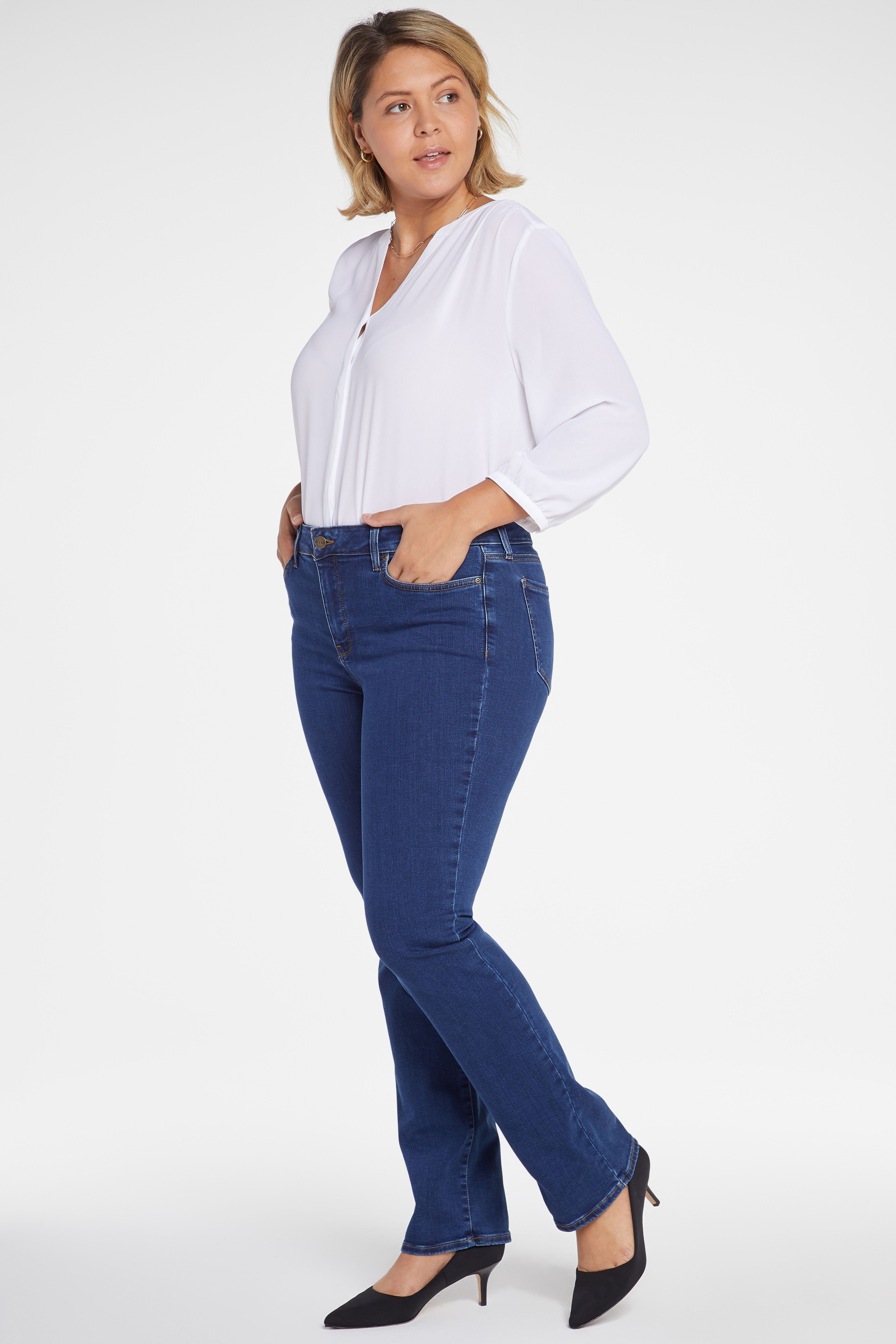 Experience timeless style and unparalleled comfort with the NYDJ Marilyn Straight Stretch Jeans. Designed specifically for the discerning woman, these jeans offer a figure-elongating silhouette that pairs effortlessly with any top, creating a versatile foundation for your wardrobe.