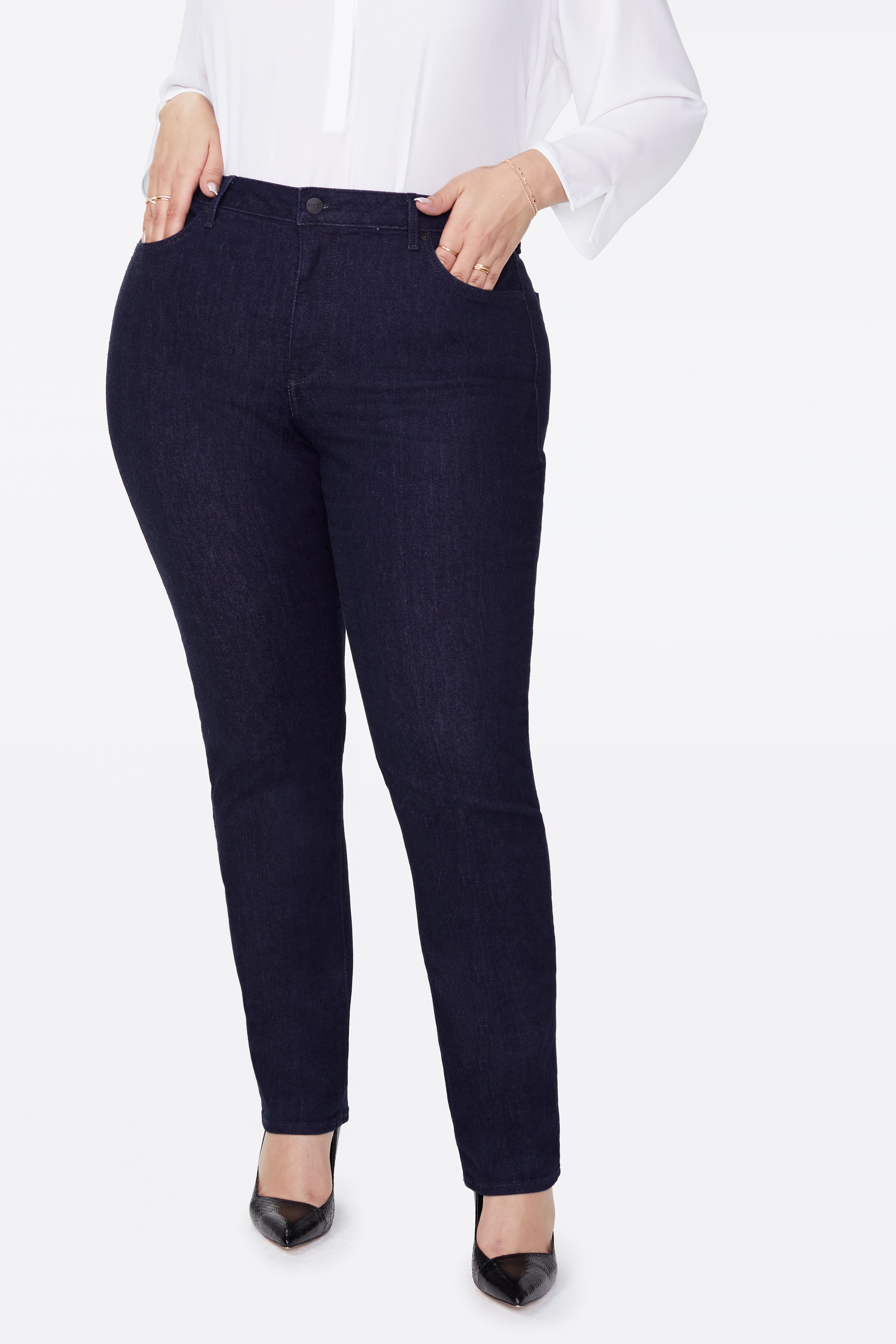 Embrace confident style with NYDJ's Sheri Slim Stretch Jeans, expertly cut in Plus Size for a fit that’s always in season and effortlessly flattering. Designed to empower your silhouette, these jeans combine sophisticated design with innovative comfort technology.